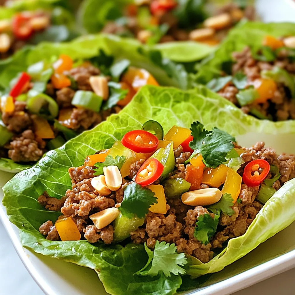 Delicious and healthy lettuce wraps filled with savory ground beef and fresh vegetables.