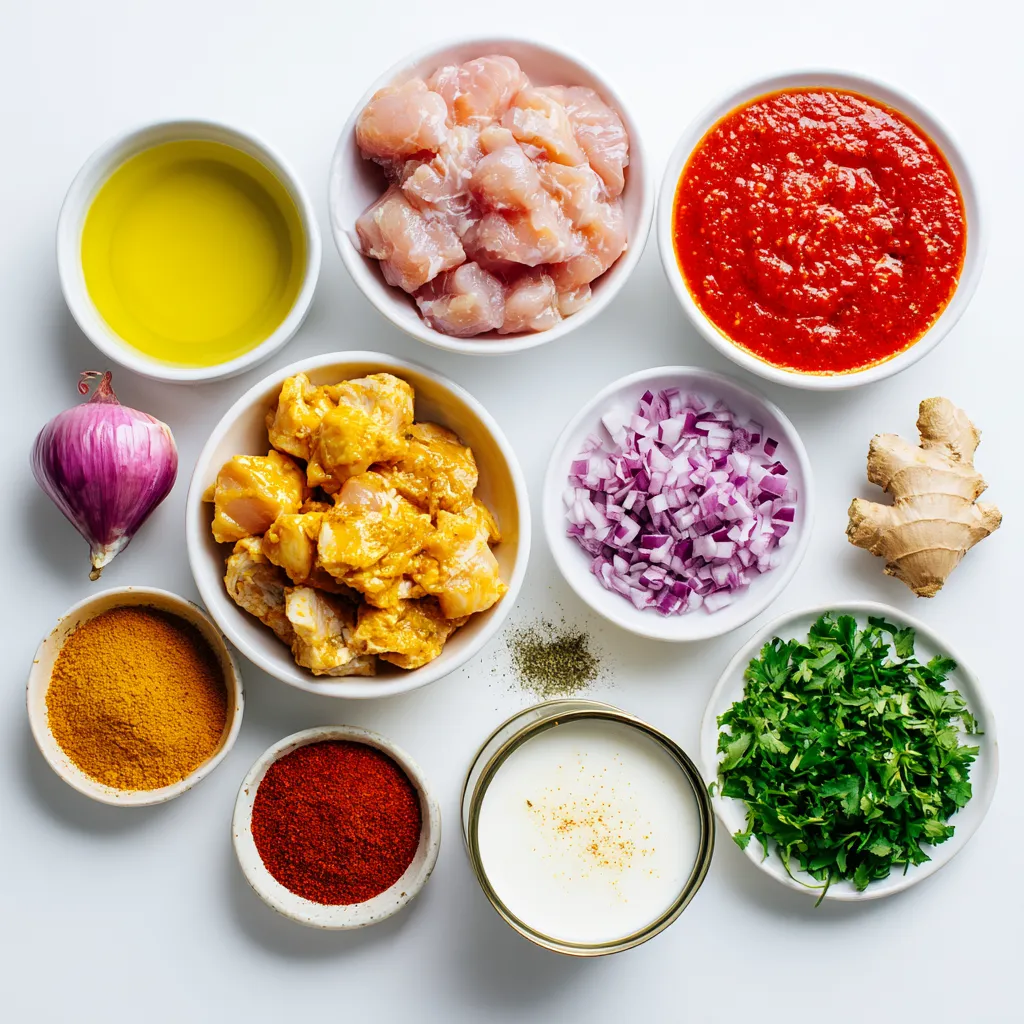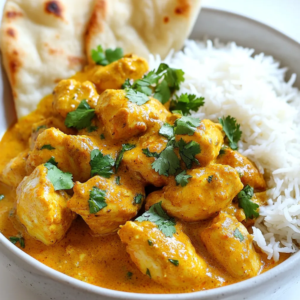 - Chicken - 1.5 lbs chicken thighs, boneless and skinless, cut into chunks - Vegetables and Aromatics - 1 large onion, finely chopped - 4 cloves garlic, minced - 1-inch piece ginger, grated - 2 tomatoes, pureed - Spices - 2 teaspoons ground cumin - 2 teaspoons ground coriander - 1 teaspoon turmeric powder - 1 teaspoon garam masala - 1 teaspoon red chili powder (adjust to taste) - Salt to taste - Coconut Milk and Garnish - 1 cup coconut milk - Fresh cilantro, chopped (for garnish) When I make this chicken curry, I focus on fresh ingredients. The chicken thighs are juicy and tender. They soak up all the rich flavors. I love using onions, garlic, and ginger for a strong base. Each adds depth to the dish. Spices bring life to this recipe. Ground cumin and coriander give warmth and earthiness. Turmeric adds a bright color and a slight bitterness. Garam masala is the star with its sweet spice notes. The red chili powder can kick the heat up a notch or two, depending on your taste. Coconut milk ties everything together. It adds creaminess and balances the spices. Fresh cilantro on top makes the dish pop. It adds a fresh taste and a nice color contrast. With these ingredients, you're ready to create a flavorful meal. {{ingredient_image_1}} Start by heating the vegetable oil in a large pot over medium heat. Add the finely chopped onion. Cook it until it turns golden brown, which takes about 7 to 8 minutes. This step builds a sweet base for your curry and adds depth to the flavor. Next, stir in the minced garlic and grated ginger. Let them cook for another 2 minutes. You will smell a wonderful aroma as they cook. This mix of onion, garlic, and ginger adds great flavor to our curry. Now, mix in the pureed tomatoes. Cook this mixture for about 5 minutes until it thickens. After that, add the ground cumin, coriander, turmeric, garam masala, red chili powder, and salt. Sauté this spice mix for 2 to 3 minutes. Toasting the spices helps release their flavors. Increase the heat to medium-high. Add the chicken pieces to the pot. Cook for 5 to 7 minutes. Stir occasionally until the chicken is browned on all sides. This step locks in the juices and creates a nice crust on the chicken. Now, pour in the coconut milk and stir well. Bring the mixture to a simmer. After that, reduce the heat to low and cover the pot. Let it cook for 25 to 30 minutes, stirring occasionally. The chicken will become tender and soak up all the rich flavors from the sauce. Once the chicken curry is ready, taste it and adjust the seasoning if needed. Garnish with fresh cilantro before serving. For a beautiful presentation, serve the curry in a deep bowl. Pair it with fluffy basmati rice or warm naan bread. Add a slice of lime on the side for color and a zesty kick. Enjoy your flavorful meal! Spice Toasting Techniques To get the best flavor from your spices, toast them. Heat your pan first. Add the dry spices like cumin and coriander. Stir them for 2-3 minutes until they smell strong. This step wakes up the spices. It brings out their natural oils and flavors. You will notice a big taste difference in your chicken curry. Importance of Fresh Ingredients Always use fresh ingredients when you cook. Fresh onions, garlic, and spices make your dish shine. They add depth to your curry. A good tip is to buy whole spices and grind them yourself. This keeps their flavor strong and bold. Fresh coconut milk also enhances the dish. It brings creaminess and richness that canned versions can't match. Using Heavy-Bottomed Pots Choose a heavy-bottomed pot for this recipe. It spreads heat evenly. This helps avoid burning your curry. A sturdy pot keeps everything simmering well. When you use the right pot, your chicken cooks evenly. It also keeps the sauce rich and thick. Alternative Cooking Appliances If you don’t have a heavy pot, you can use other appliances. A slow cooker or Instant Pot works well. They keep the flavors locked in and let the chicken cook slowly. This can make your chicken extra tender. Just adjust the cooking time for these devices. They can help you create delicious meals with less effort. Best Sides to Accompany Chicken Curry Pair your chicken curry with the right sides. Basmati rice is a classic choice. Its fluffy texture balances the rich curry. You can also serve naan bread. It’s perfect for scooping up the sauce. If you want something lighter, try a simple salad. Fresh cucumber and tomato can brighten your meal. Presentation Ideas Make your chicken curry look appealing. Use a deep bowl to serve. Garnish with chopped cilantro for a fresh look. A slice of lime adds color and flavor. This makes your dish pop on the table. When you present well, it makes meals more special and inviting. Pro Tips Adjust the Spice Level: Feel free to modify the amount of red chili powder based on your heat preference. Start with less and add more if you like it spicier. Marinate the Chicken: For deeper flavor, marinate the chicken in yogurt and spices for a few hours before cooking. This will also tenderize the meat. Use Fresh Ingredients: Fresh garlic, ginger, and herbs will elevate the flavor of your curry. Whenever possible, opt for fresh over dried ingredients. Rest Before Serving: Allow the curry to sit for a few minutes after cooking. This resting time lets the flavors meld together beautifully. {{image_2}} Indian chicken curry varies greatly by region. In South India, the curry often has coconut milk. This gives it a creamy texture. You might find curry leaves and mustard seeds in the mix. These add a unique flavor that warms the heart. In North India, you'll see a richer sauce. This style uses yogurt for creaminess. Spices like cardamom and cloves give depth. You may also find it paired with naan instead of rice. If you want a vegetarian version, you can swap chicken for paneer or chickpeas. These options still give you protein and flavor. Use the same spices and cooking method. It will taste just as good! For gluten-free needs, skip any