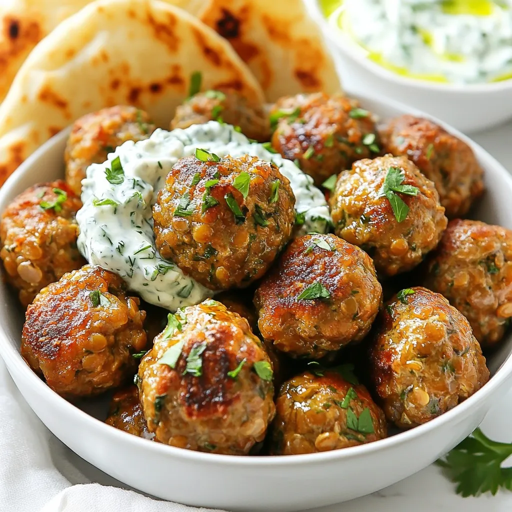 These lentil meatballs pair well with many sides. You can serve them with warm pita bread or a fresh Greek salad. Adding a side of roasted vegetables enhances the meal. If you want a heartier option, serve them over rice or quinoa. For extra flavor, drizzle some extra tzatziki on top of the meatballs.