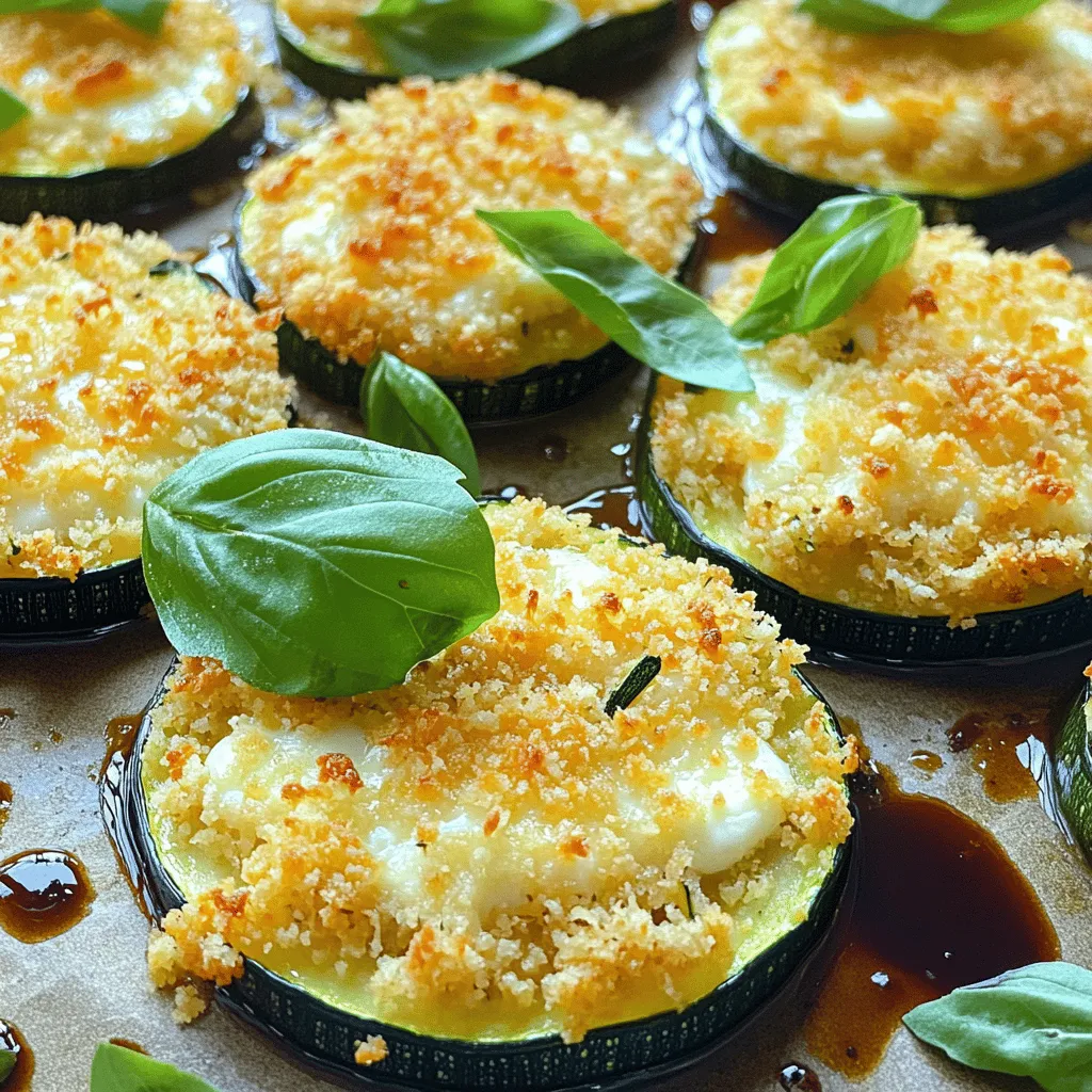 Present your dish on a large, colorful platter. Drizzle some balsamic reduction on top for a fancy touch. Add fresh basil leaves as a garnish for color and flavor. Pair your baked zucchini with a light salad or grilled chicken. This adds a nice balance to the meal and makes it more filling.