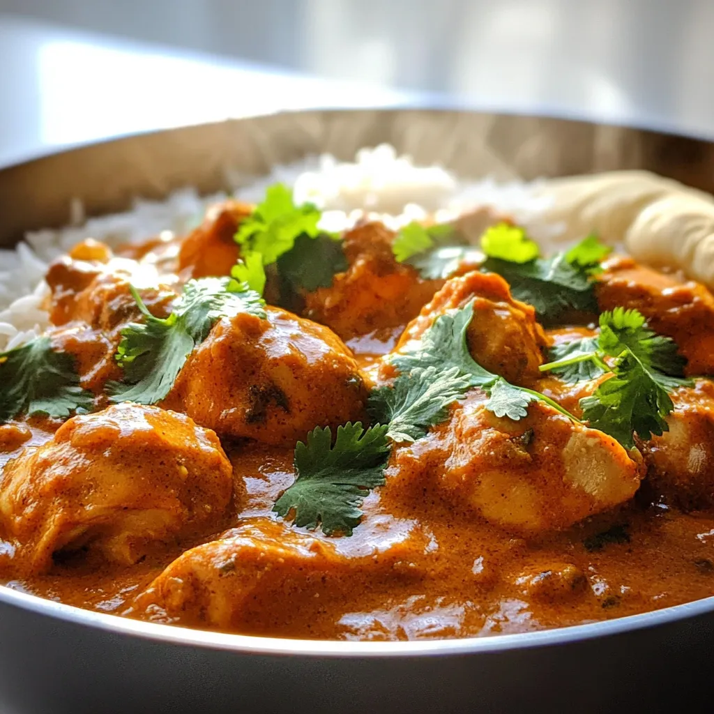 Now it’s time to make the sauce! Add 1 can of crushed tomatoes to the skillet with the onions. Cook for about 5 minutes, letting it thicken a bit. Then stir in 1 cup of heavy cream or coconut milk. Bring it to a gentle simmer. Now, return the cooked chicken to the skillet. Add 2 tablespoons of unsalted butter and mix well. Let it simmer for another 5 minutes. Taste and adjust with salt and pepper as needed. This is where the magic happens! Serve this creamy delight hot over rice or with naan, and finish with fresh chopped cilantro.