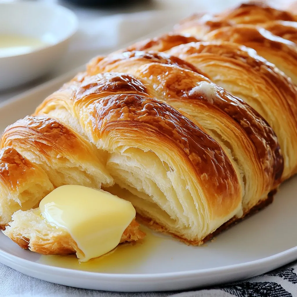 A deliciously soft and flaky bread loaf that combines the richness of croissants with the convenience of a loaf.