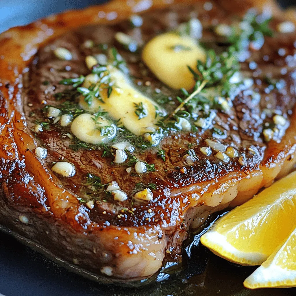Having these ingredients ready is crucial. Ribeye steaks are known for their rich flavor and tenderness. The unsalted butter adds a creamy texture and enhances the taste. Fresh thyme brings a lovely aroma while garlic infuses depth into the dish.