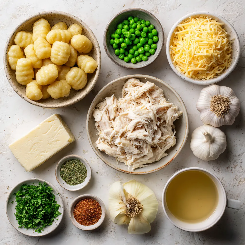 This dish is all about comfort, and the ingredients make it shine. First, we have gnocchi, which are soft potato dumplings. They soak up all the sauce and add a fluffy texture.