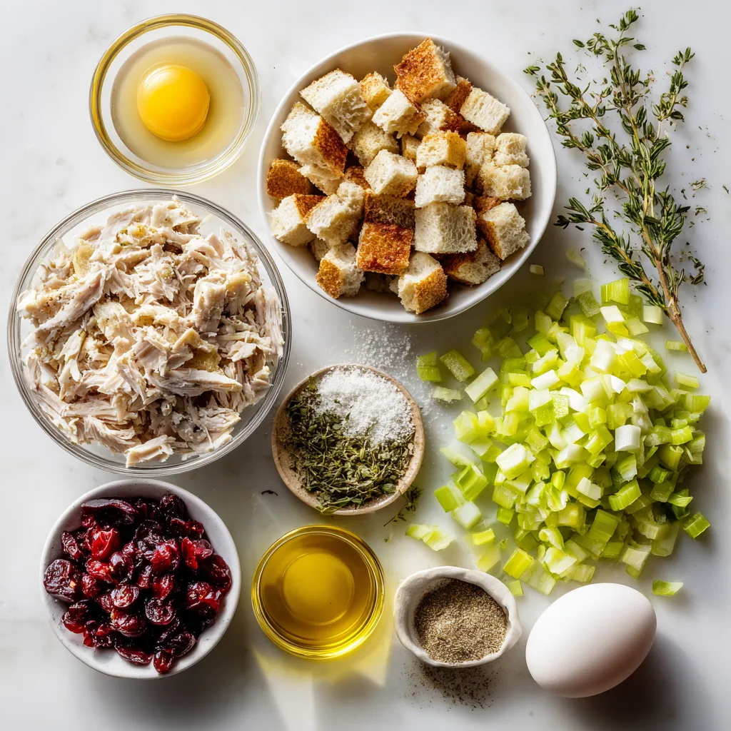 You can swap ingredients to suit your taste. If you want a twist, try using cornbread instead of stale bread. Cornbread adds a light, sweet flavor. You can also use leftover chicken if turkey is not available. For a fruity kick, add chopped apples or pears. They pair well with cranberries and turkey.