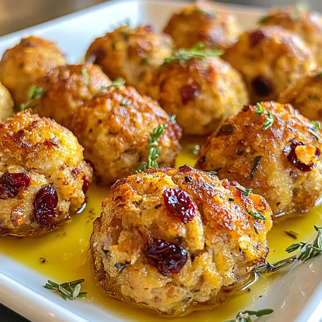 Delicious stuffing balls made with turkey, cranberries, and herbs, perfect for the holiday season.