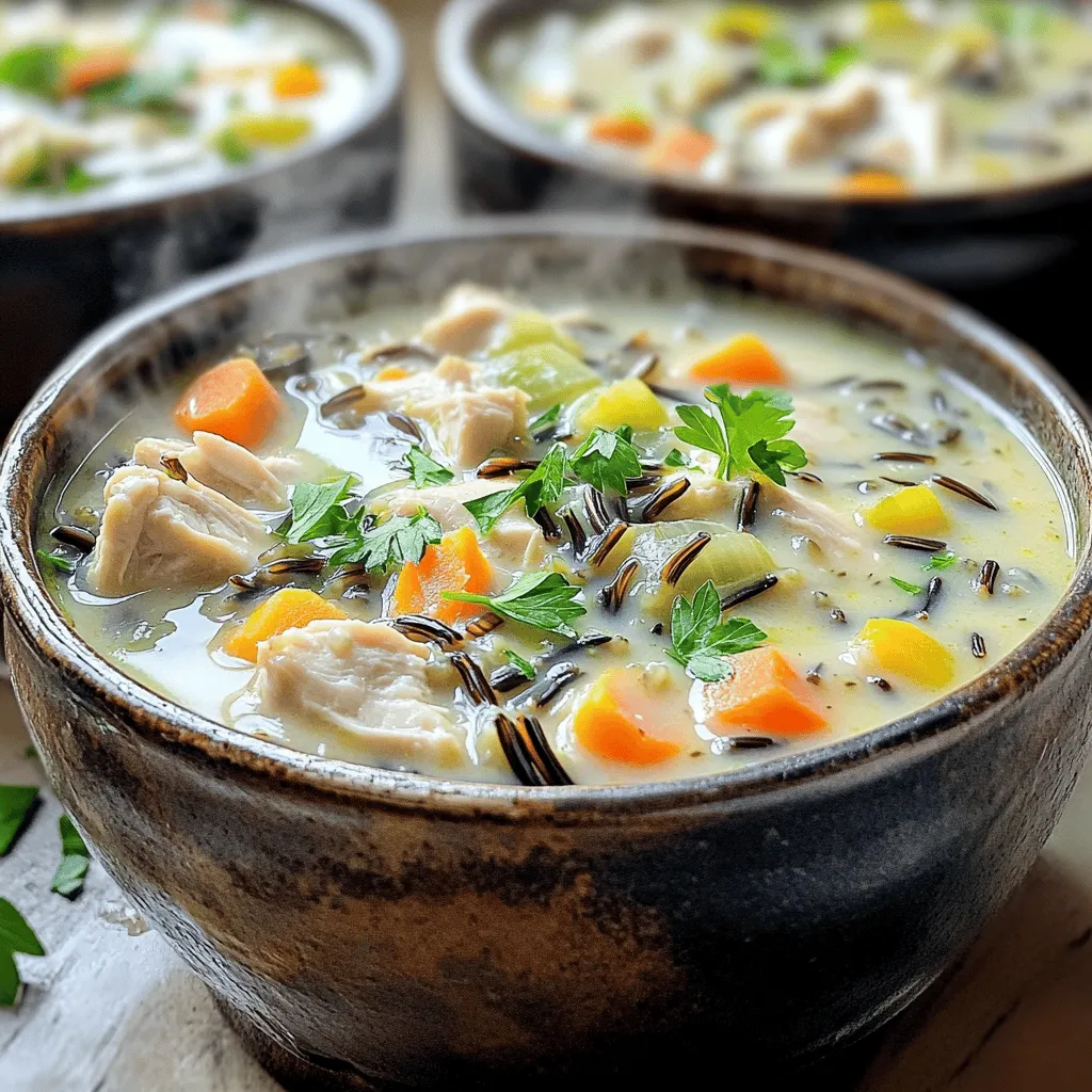 Making Creamy Chicken Wild Rice Soup is easy when you have the right ingredients. First, you need chicken. The boneless, skinless chicken breasts cook well and stay tender. Next, wild rice brings a nutty flavor and a great texture. Always use good-quality chicken broth. It adds depth to your soup.