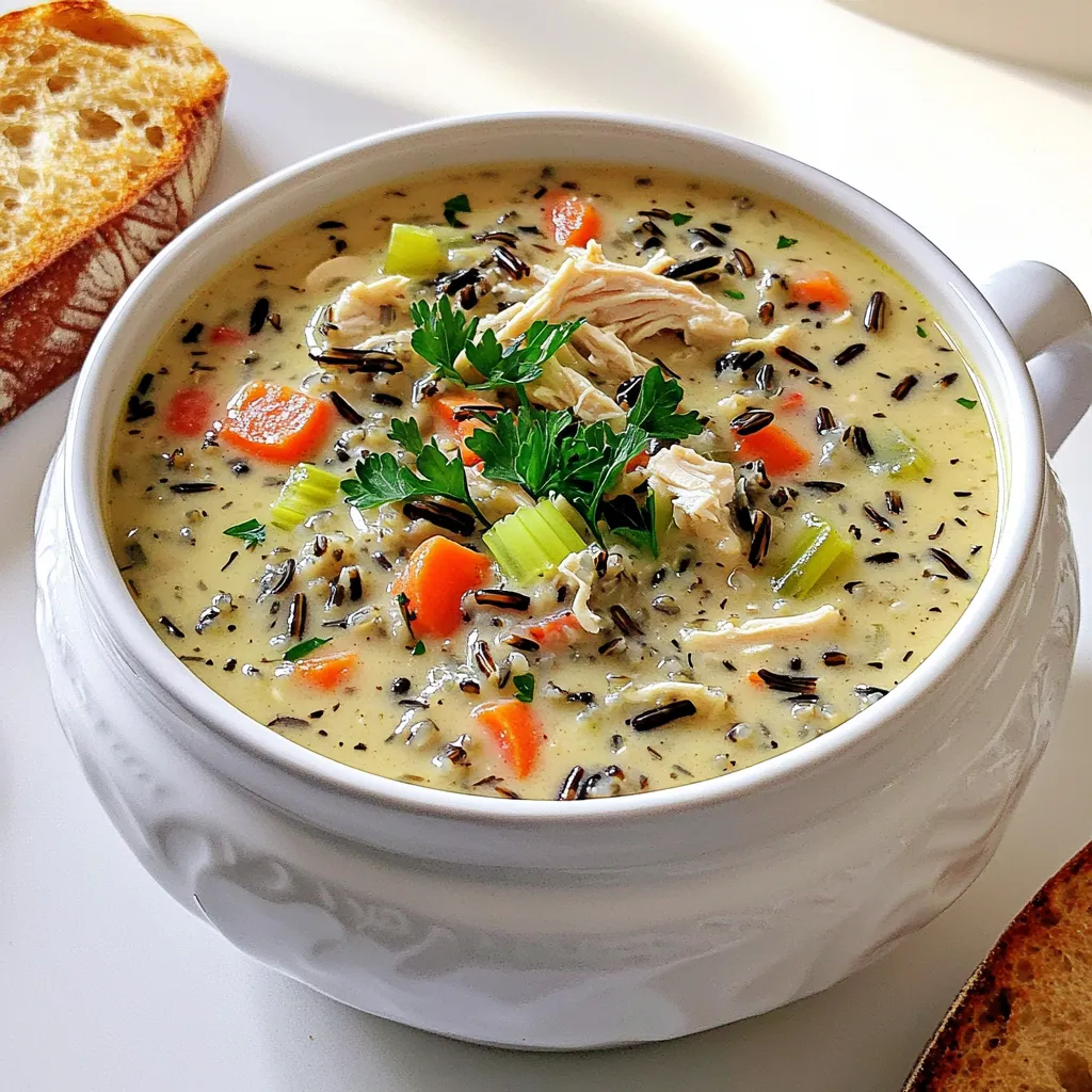 These main ingredients form the heart of your creamy chicken wild rice soup. The chicken breasts provide protein and richness. Wild rice adds a nutty flavor and chewy texture. The vegetables, like onion, carrots, celery, and garlic, give depth and sweetness. This blend creates a comforting base for your soup.