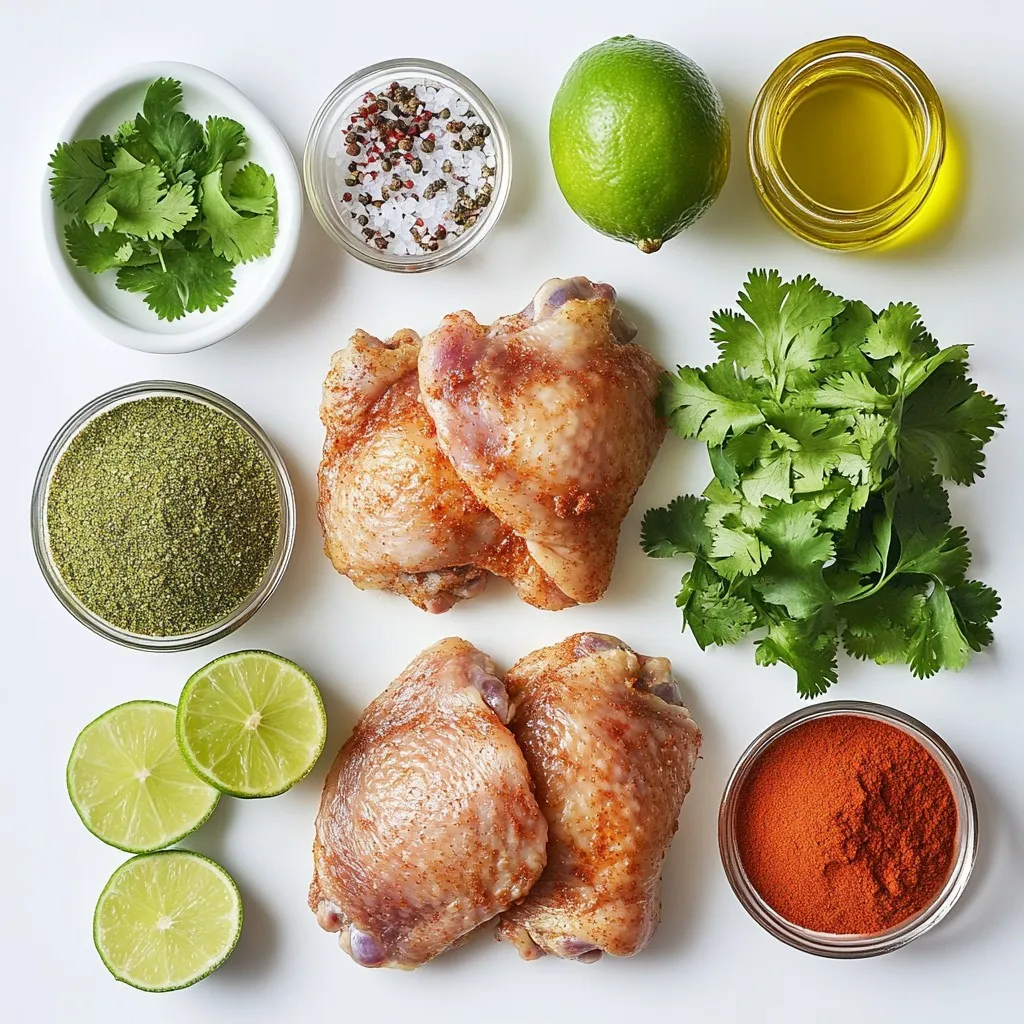Gathering the right ingredients is key to making Crispy Cilantro Lime Chicken Thighs. First, choose four bone-in, skin-on chicken thighs. These thighs give you a juicy bite and crispy skin. You also need a quarter cup of finely chopped cilantro. This herb adds a fresh, bright note to the dish. Zest and juice of two limes will bring a tangy flavor. The three cloves of minced garlic will add depth.