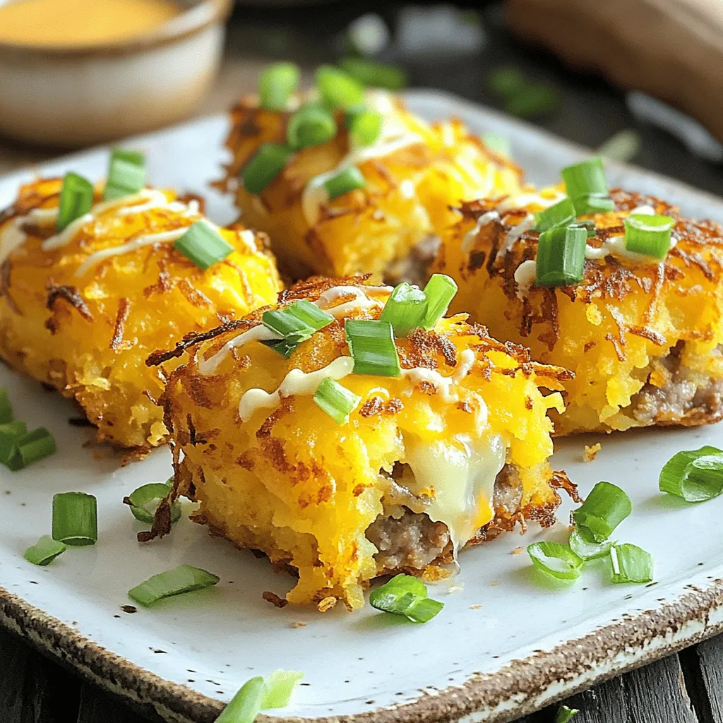 These crispy hashbrown sausage bites shine on their own. However, a good dip can make them even better! Try serving them with ketchup, ranch, or spicy mustard. You can also make a simple dip with sour cream and chives. Pair these bites with a fresh salad or fruit for a complete meal. They work great as party snacks or appetizers too!
