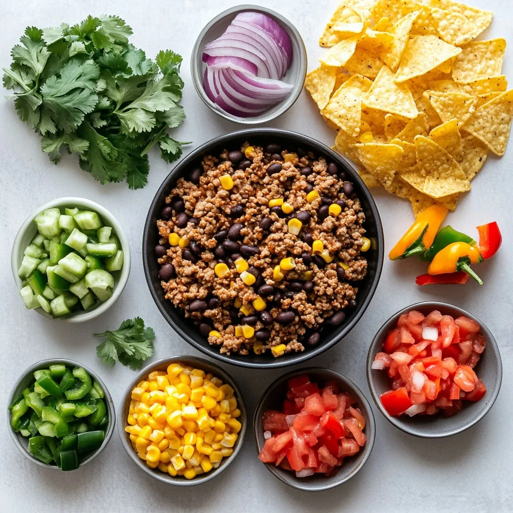 These ingredients create a rich, savory flavor. The ground meat serves as the base. The beans and corn add texture and nutrition. Diced tomatoes bring freshness, and taco seasoning ties the flavors together.