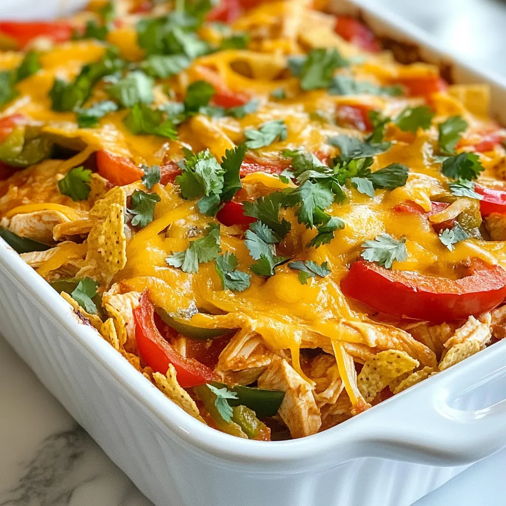 – Serve and garnish: Once baked, take it out of the oven and let it cool slightly. Garnish with chopped cilantro before serving. Enjoy your delicious fajita chicken casserole!