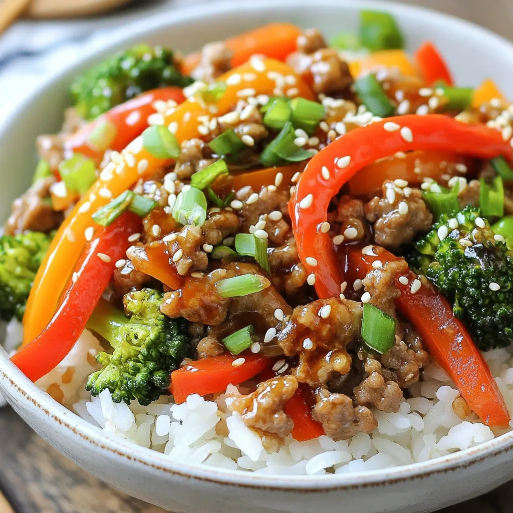 A quick and flavorful stir fry featuring ground turkey and fresh vegetables in a homemade teriyaki sauce.