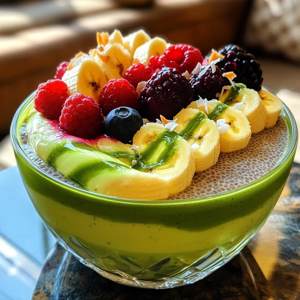 Now comes the fun part! Grab your serving cups or small bowls. Start layering your puddings. Alternate between the matcha and vanilla mixtures to create a beautiful swirl. Top each serving with fresh fruits like berries or banana slices. For an extra crunch, sprinkle some toasted coconut flakes on top. Enjoy this refreshing and nutritious treat!