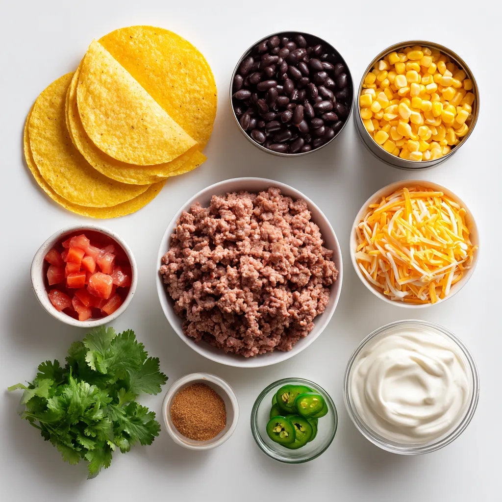 Start by preheating your oven to 375°F (190°C). This is key for a nice bake. Next, grab a large skillet. Add the chopped onion and minced garlic. Sauté them over medium heat for about 3-4 minutes. You want the onion to turn translucent. Then, add the ground beef or turkey. Cook it until it’s browned, breaking it apart while it cooks. This takes about 6-8 minutes. Make sure to drain any excess fat from the skillet. After that, stir in your taco seasoning, black beans, corn, and diced tomatoes. Mix well and let it simmer for 5 minutes. Season with salt and pepper to taste.