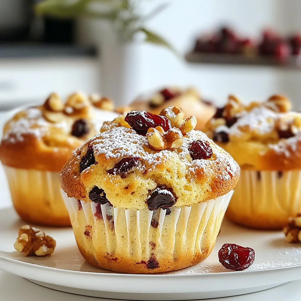 - Customize Your Mix-Ins: Feel free to swap out cranberries and walnuts for your favorite dried fruits or nuts, like raisins or pecans, to make these muffins your own.