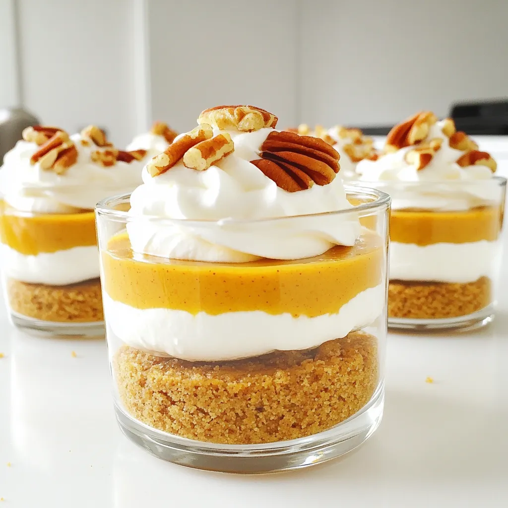 Place the assembled cups in the refrigerator. Let them chill for at least 2 to 3 hours. This time allows the cheesecake to set properly. The cool temperature helps the flavors meld together. Before serving, top each cup with a dollop of whipped cream. Sprinkle with toasted pecans or walnuts for that extra crunch. Enjoy your delicious no-bake pumpkin cheesecake cups!
