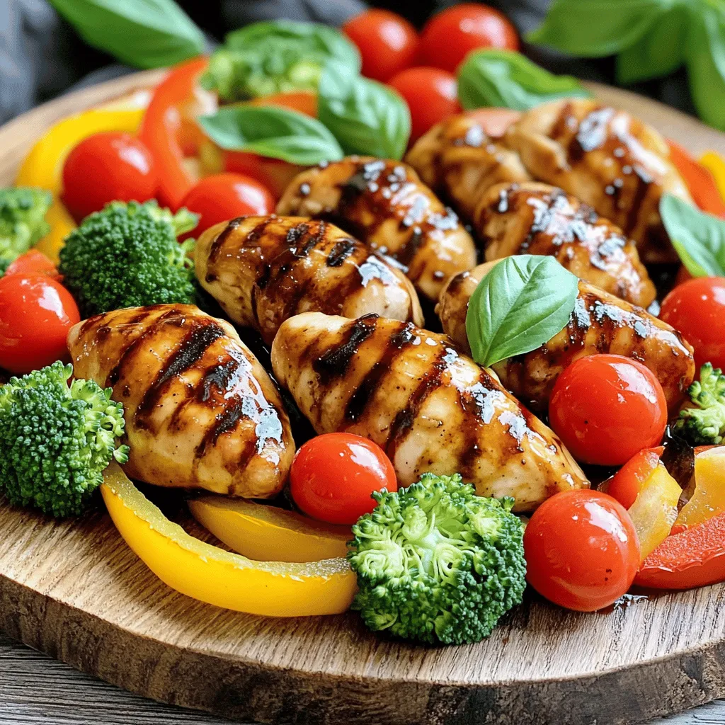 This simple mix of ingredients brings great flavor. The balsamic vinegar adds tang, while honey adds a sweet touch. Garlic and herbs make everything taste fresh. You get a balanced meal with chicken and colorful veggies. This dish is not only tasty but also quick to prepare. Make sure to have everything ready before you start cooking. It helps to have fresh basil for a nice finish.