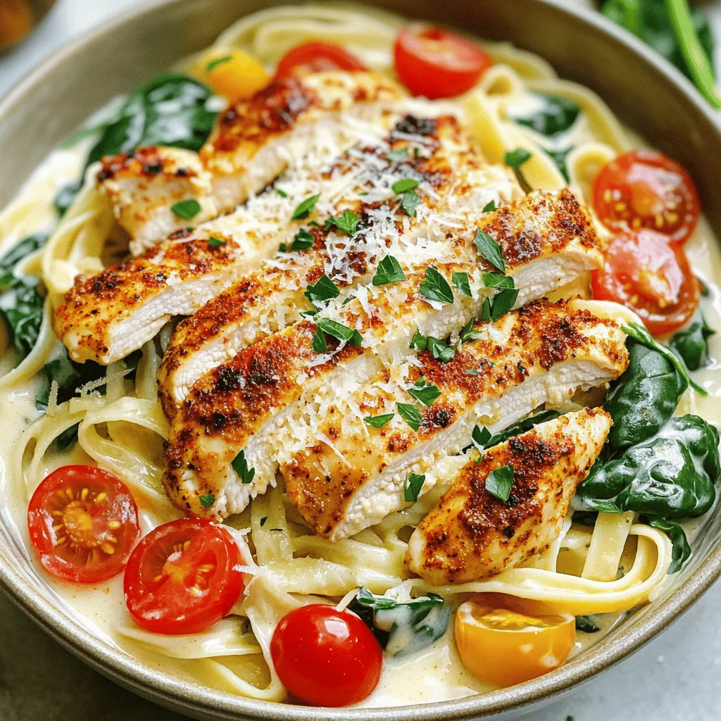 The main ingredients create the base for this dish. The chicken brings protein and flavor, while Cajun seasoning adds a spicy kick. Fettuccine pasta gives the meal a nice, hearty texture.