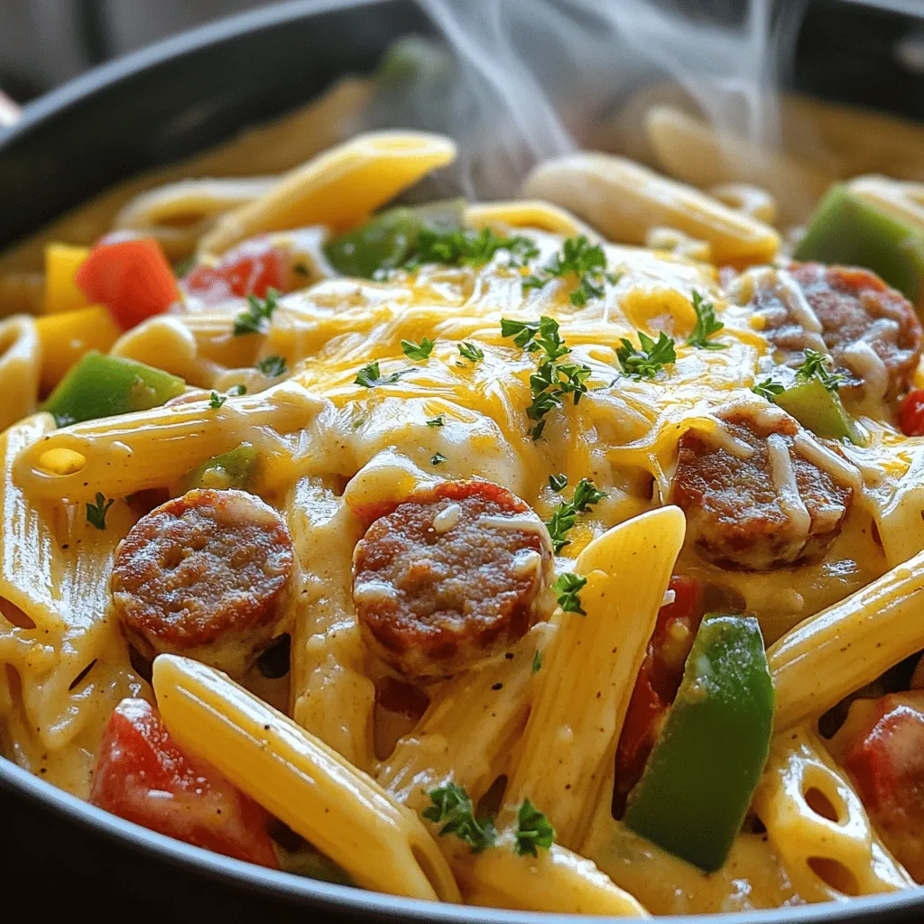Yes, you can make this dish ahead of time. To prep, cook the sausage, veggies, and pasta as directed. Let it cool and then store it in an airtight container. You can keep it in the fridge for up to 3 days. When ready to serve, reheat it on the stove. Add a splash of chicken broth or cream to keep it creamy. This method saves time on busy days.