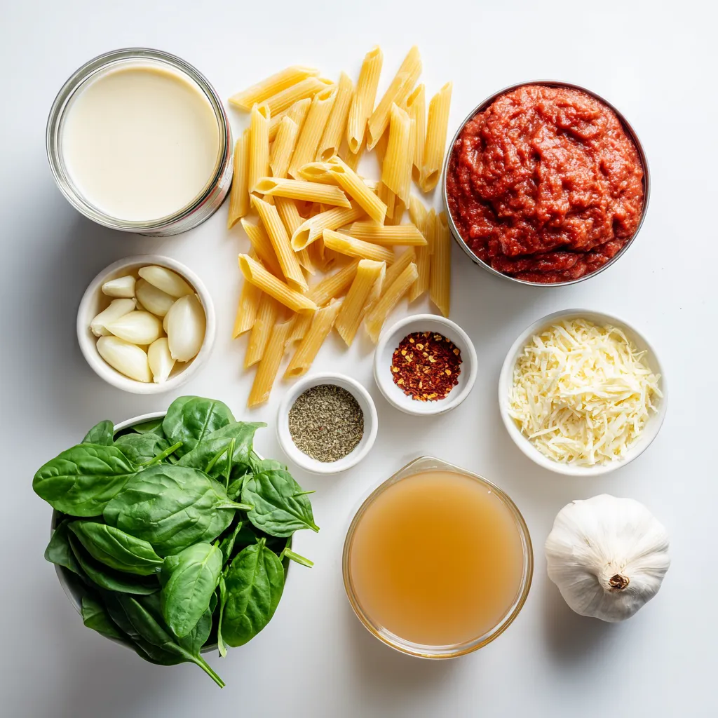 A delicious and easy one-pot pasta dish with creamy tomato sauce and fresh spinach.