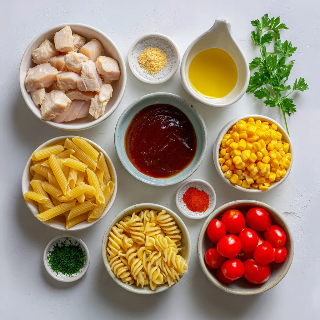 For this One Pot Honey Garlic BBQ Chicken Pasta, you need simple, fresh ingredients. Start with the chicken. I like using boneless, skinless chicken breasts. They cook quickly and stay tender. Cut them into small pieces for even cooking.