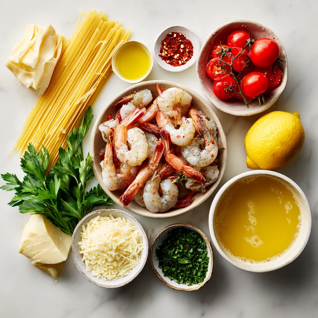 The main ingredients are the stars of this dish. You will need 8 ounces of linguine or spaghetti. I love linguine for its flat shape, which holds sauce well. Next, grab a pound of medium shrimp. Make sure they are peeled and deveined for easy cooking. Lastly, you need three tablespoons of unsalted butter. Butter adds a rich taste that makes this dish special.