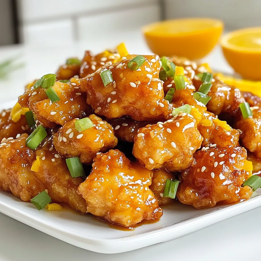 Orange chicken shines with simple sides. Serve it over steamed rice or fried rice. Add some stir-fried veggies for color and nutrition. Green onions and sesame seeds make great garnishes. They add flavor and texture. You can also pair it with a fresh salad. This adds a nice crunch and balance to the meal.