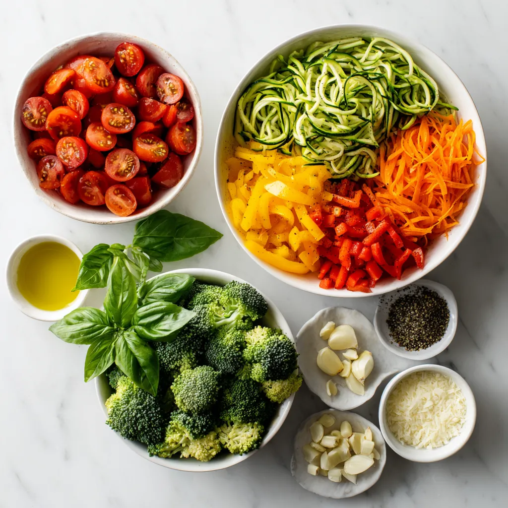 Cherry tomatoes add a sweet burst of flavor. Zucchini brings a nice crunch, while bell pepper adds color and taste. Broccoli florets offer a slight bitterness that balances the dish. Carrots add sweetness and a lovely orange hue.