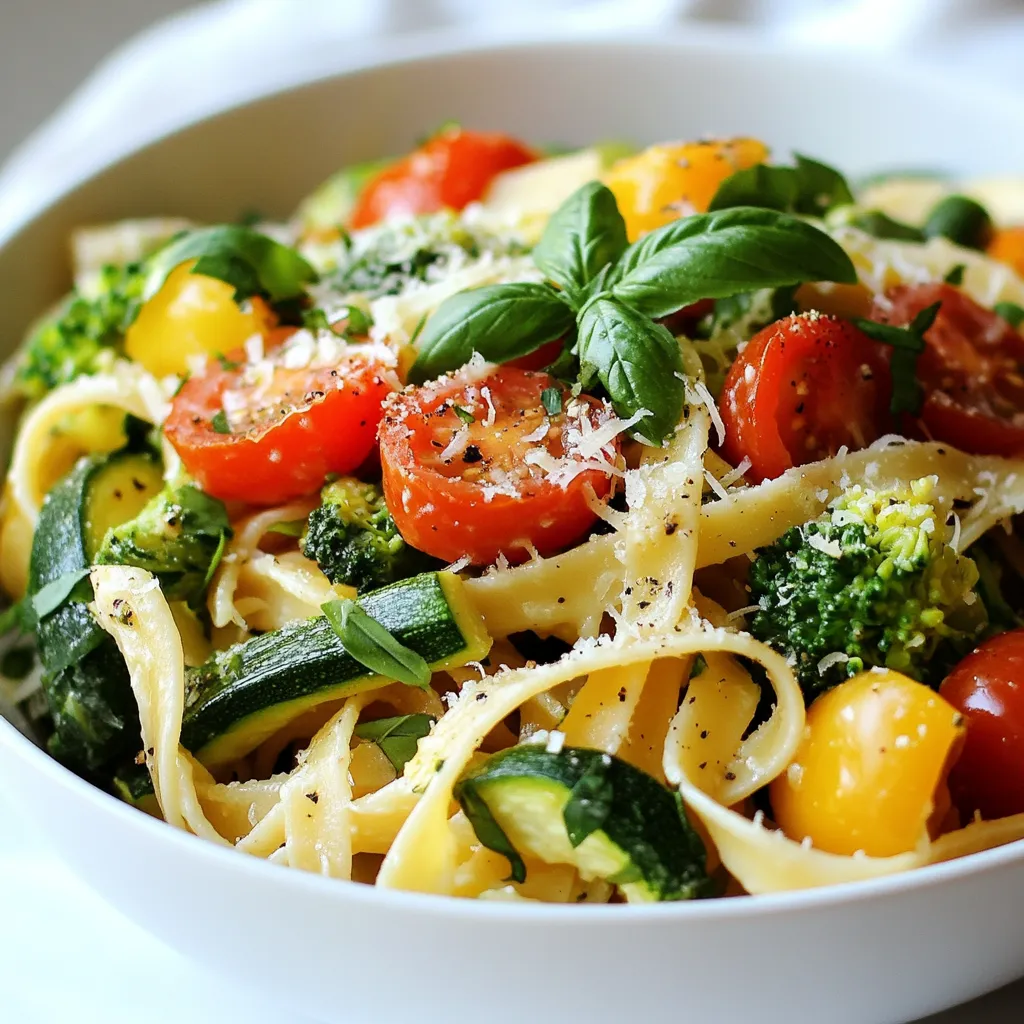 To make Pasta Primavera, you need fresh ingredients. Here’s what you need: - 8 oz spaghetti or fettuccine - 1 cup cherry tomatoes, halved - 1 medium zucchini, sliced - 1 bell pepper (any color), sliced - 1 cup asparagus, trimmed and cut into 2-inch pieces - 1 cup broccoli florets - 2 cloves garlic, minced - 1/4 cup extra virgin olive oil - 1 teaspoon Italian seasoning - Salt and pepper to taste - Fresh basil leaves, for garnish - Grated Parmesan cheese (optional) Fresh vegetables make the dish bright and tasty. Use cherry tomatoes for sweetness. The zucchini adds a nice crunch. Bell peppers bring color and flavor. Asparagus and broccoli add nutrition and texture. Mix and match these veggies as you like! You can choose between spaghetti or fettuccine. Spaghetti is thin and long, great for twirling. Fettuccine is wider and flat, perfect for holding sauce. Both are delicious in this dish. Pick the one you love! Garnish your Pasta Primavera with fresh basil leaves. They add a fragrant touch. You can also sprinkle grated Parmesan cheese on top. This adds a creamy, salty flavor. Feel free to get creative with your toppings! {{ingredient_image_1}} Start by boiling a large pot of salted water. This helps the pasta taste better. Once the water boils, add your spaghetti or fettuccine. Cook it according to the package instructions. Aim for that perfect al dente texture. When it's done, reserve half a cup of pasta water. This water helps with the sauce later. After that, drain the pasta and set it aside. Next, heat a large skillet over medium heat. Pour in the extra virgin olive oil. Let it warm up for a minute. Now add the minced garlic. Cook it until it smells amazing, about one minute. Then, toss in the cherry tomatoes, zucchini, bell pepper, asparagus, and broccoli. Stir in the Italian seasoning, salt, and pepper. Cook everything for about five to seven minutes. You want the veggies to be tender but still colorful. Now it’s time to bring it all together. Add the drained pasta to the skillet. Toss everything gently to mix. If it seems too dry, add some of the reserved pasta water. Do this one tablespoon at a time until you like the sauce's thickness. Once everything is well combined, take the skillet off the heat. Your vibrant Pasta Primavera is ready to serve! You can easily make this dish your own. Try adding protein options like grilled chicken or shrimp. Both add flavor and make the dish more filling. If you want a vegetarian twist, try chickpeas or tofu. You can also swap out vegetables based on what you have. If zucchini is not in season, use bell peppers or snap peas. Carrots, mushrooms, or even spinach work well too. Just keep the colors bright for a beautiful dish. To avoid overcooked noodles, watch the time closely. Cook your pasta until it is al dente. This means it should still have a slight bite. Remember to taste it a minute or two before the package time ends. Using reserved pasta water can be a game changer. This water is starchy and helps sauces stick. When mixing your pasta and veggies, add a little pasta water at a time. Stir until you reach the right sauce consistency. This keeps your dish creamy without being too heavy. Pro Tips Choose Fresh Vegetables: Opt for seasonal, fresh vegetables for the best flavor and nutritional value. Don't Overcook the Pasta: Cook the pasta al dente to ensure it maintains a slight bite and holds up well with the sauce. Customize Your Veggies: Feel free to substitute or add your favorite vegetables to make this dish your own. Use Pasta Water Wisely: The reserved pasta water is starchy and helps to create a smooth, cohesive sauce. {{image_2}} You can change the vegetables in Pasta Primavera based on the season. In spring, use fresh asparagus and peas. Summer brings sweet corn and colorful bell peppers. In fall, try roasted butternut squash and kale. Winter calls for hearty veggies like carrots and Brussels sprouts. The key is to pick what is fresh and in season. This will make your dish taste bright and lively. If you need gluten-free pasta, look for rice or quinoa pasta. Both options work well in this recipe. For a vegan version, swap the Parmesan cheese with nutritional yeast or a vegan cheese. You can add beans or lentils for protein. These swaps keep the dish tasty while fitting your diet. Adjust the recipe to match your needs and enjoy every bite! To keep your leftover Pasta Primavera fresh, first let it cool down. Place it in an airtight container. Make sure to seal it tightly. Store the container in the refrigerator. It can last for up to three days. If you want to keep it longer, consider freezing it. Use a freezer-safe container, and it can last for up to two months. Just remember to label the container with the date. When it’s time to eat your leftovers, you have a few options to reheat. The stovetop is great for keeping texture. Add a splash of water or olive oil to a pan. Heat it on low and stir often. This helps the pasta stay moist. You can also use the microwave. Place the pasta in a bowl with a little water. Cover it with a damp paper towel. Heat in short bursts, stirring in between. Both methods keep your dish tasty and fresh. Pasta Primavera is a fresh, colorful dish that highlights spring vegetables. The name means "spring pasta" in Italian. This dish first appeared in the 1970s in America. It often features pasta, olive oil, garlic, and a mix of seasonal veggies. The goal is to bring out the bright flavors of the vegetables. You can use any pasta you like, but spaghetti or fettuccine works well. Yes, you can prepare Pasta Primavera ahead of time! Cook the pasta and veggies separately. Store them in the fridge. When you're ready to eat, just reheat them together in a skillet. Add a bit of pasta water to keep it moist. This method saves time and keeps your meal fresh. Pasta Primavera pairs well with many side dishes. A simple green salad adds freshness. Garlic bread is also a great choice for a satisfying meal. You might eve
