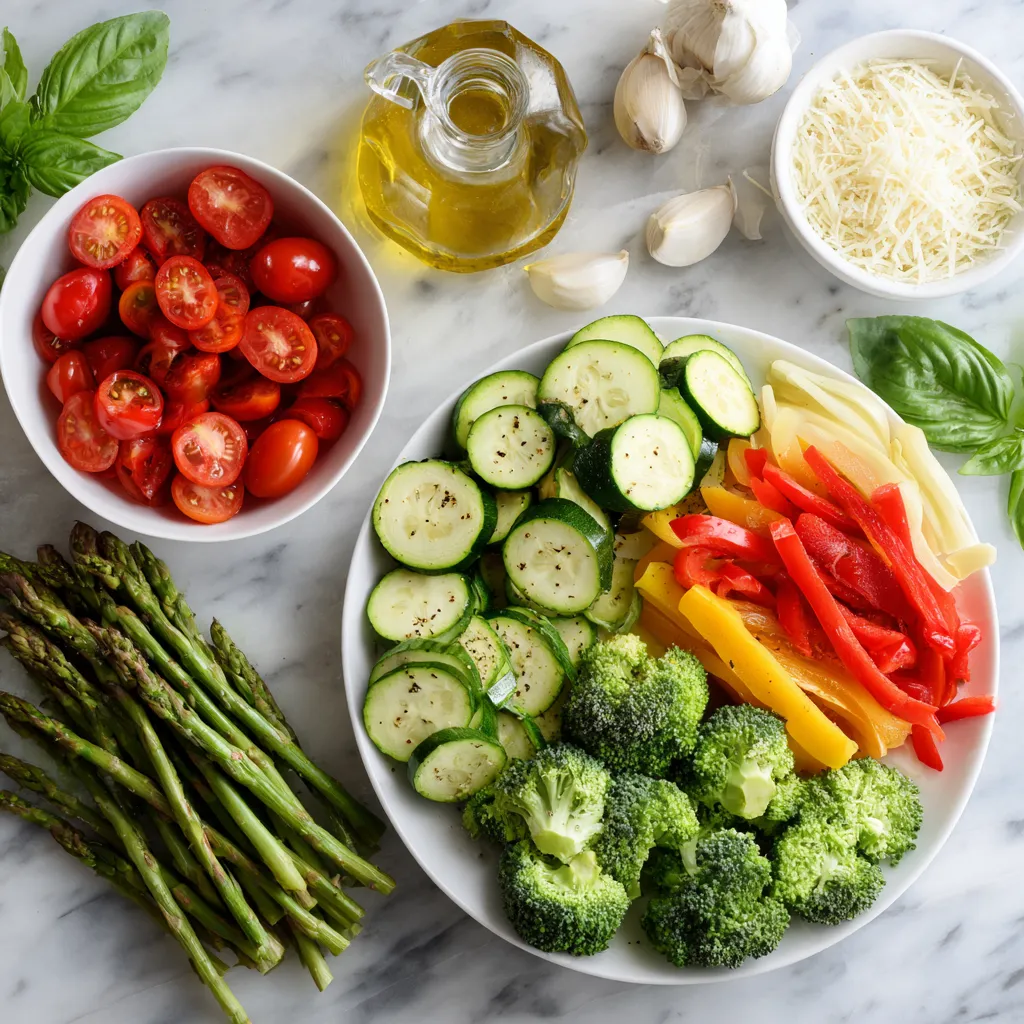Fresh vegetables make the dish bright and tasty. Use cherry tomatoes for sweetness. The zucchini adds a nice crunch. Bell peppers bring color and flavor. Asparagus and broccoli add nutrition and texture. Mix and match these veggies as you like!
