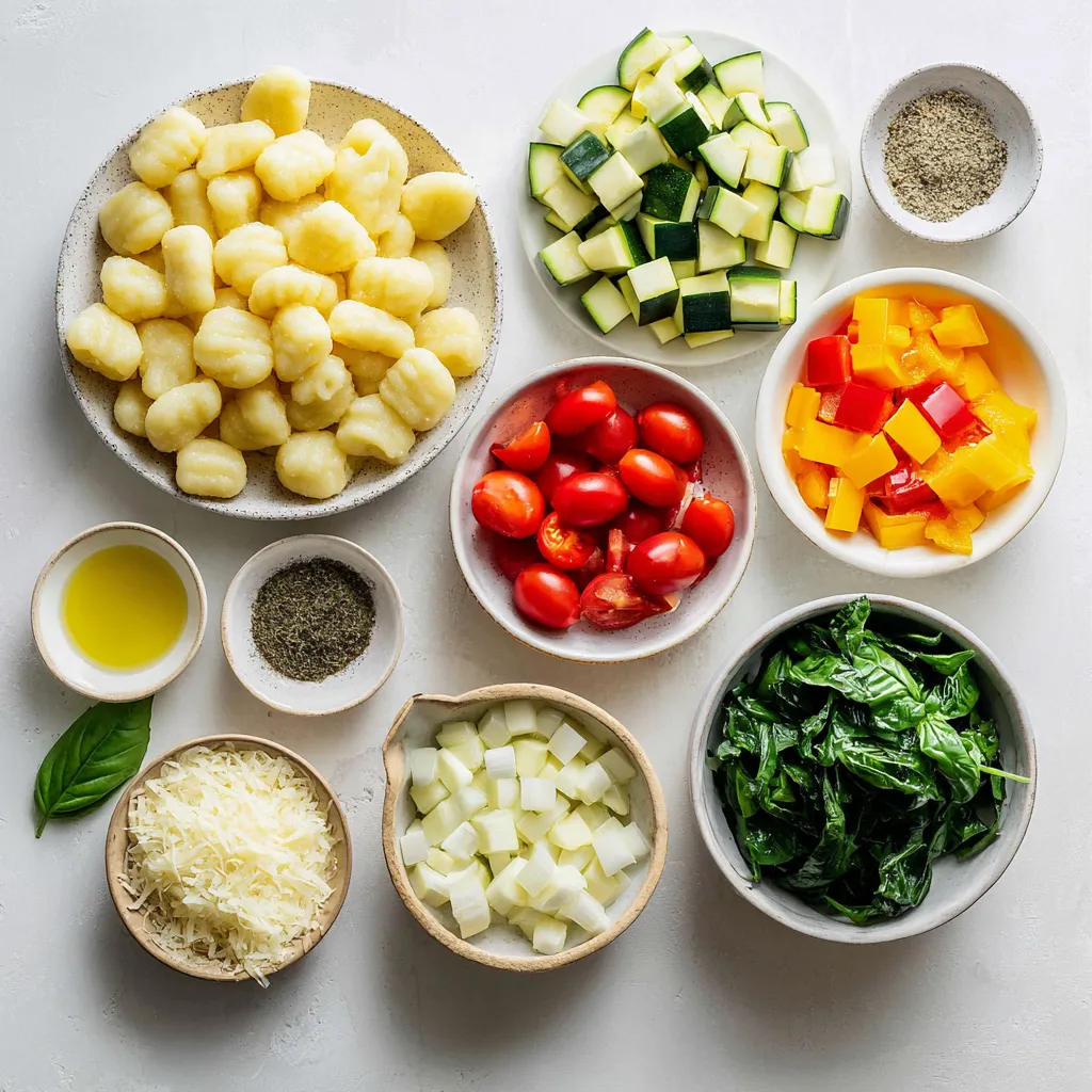 Potato gnocchi is the star of this dish. These soft dumplings add a nice texture and taste. Olive oil helps cook the veggies and adds flavor. The onion and garlic create a tasty base for the dish. Zucchini and bell pepper bring color and crunch. Cherry tomatoes add sweetness and juiciness. Baby spinach gives a fresh, green touch. Italian herbs mix well, enhancing all the flavors. Parmesan cheese, if used, adds richness. Fresh basil leaves complete the dish with a burst of flavor.