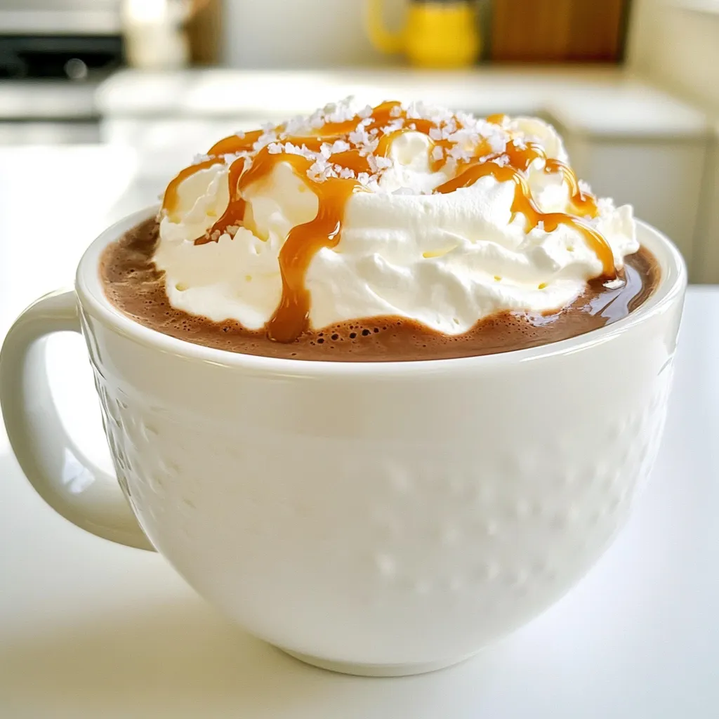 Remove the pot from heat. Stir in 1 teaspoon of vanilla extract and 1/4 teaspoon of sea salt. This adds depth to the flavor. Taste your hot chocolate. If you want it sweeter, add more caramel sauce. Pour the hot chocolate into mugs. Top it off with whipped cream. Drizzle extra caramel sauce over the whipped cream and sprinkle with more sea salt. Enjoy your warm and cozy drink!