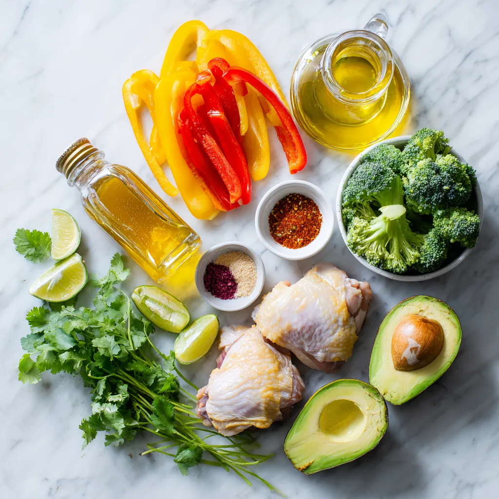 These ingredients add nutrition and balance. Brown rice or quinoa serves as a hearty base. Broccoli adds vitamins and a nice crunch. Sliced bell peppers bring color and sweetness. Avocado adds creaminess and healthy fats.