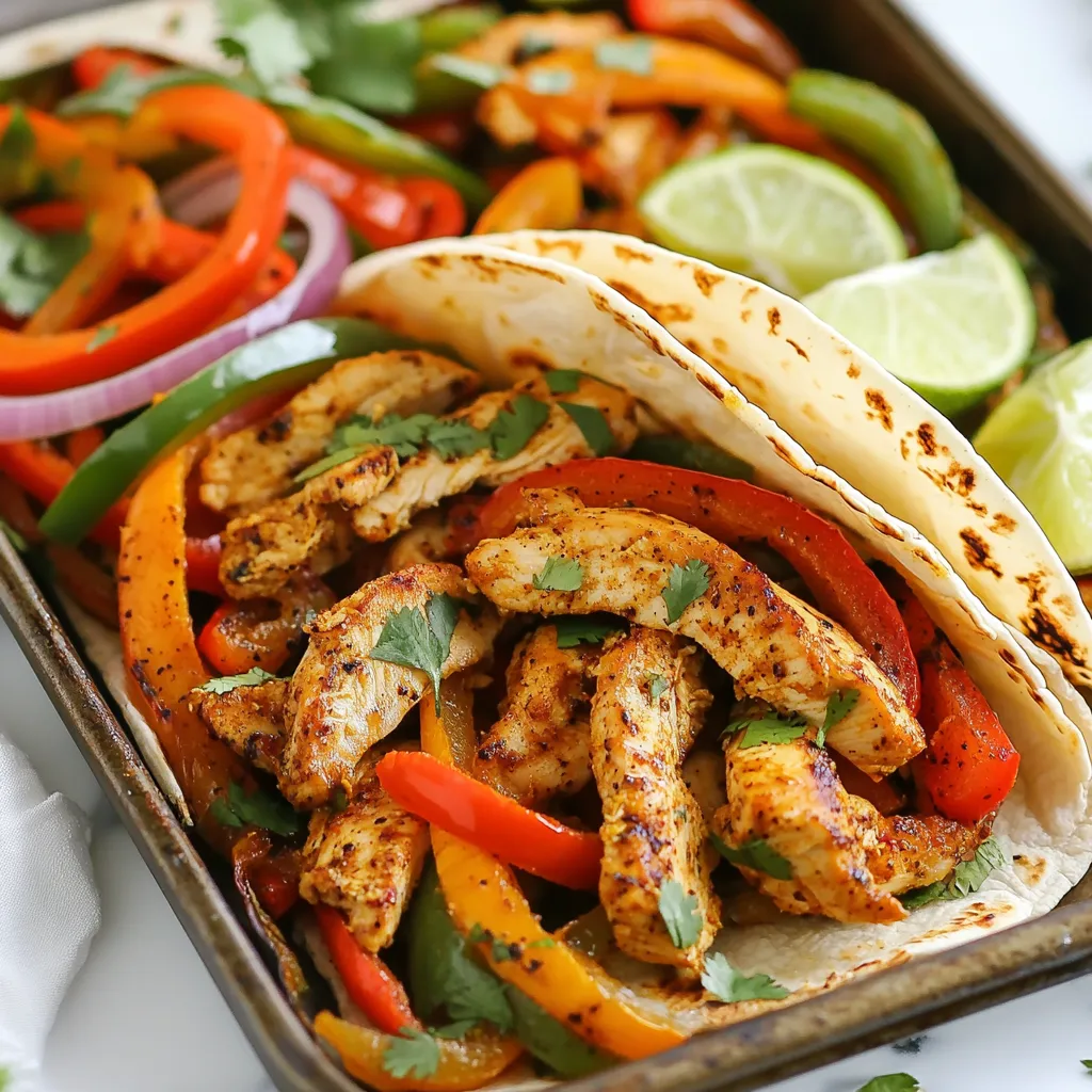 A vibrant and easy-to-make chicken fajitas recipe baked on a sheet pan for a delicious meal.