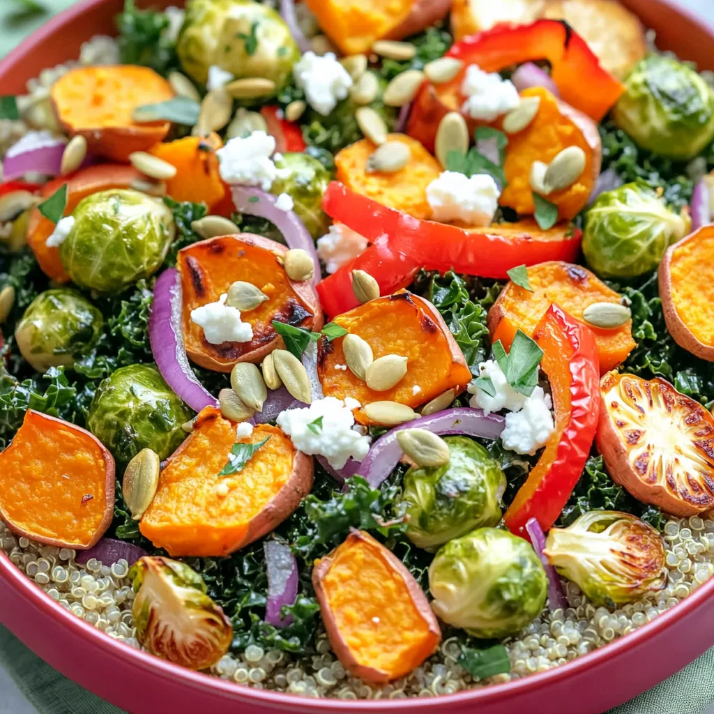 The main ingredients bring warmth and comfort. Quinoa serves as the grain base. It adds protein and fiber. Sweet potatoes offer sweetness and creaminess. Brussels sprouts add a nice crunch. The red bell pepper and red onion bring color and flavor. Olive oil helps to roast the veggies and adds richness.