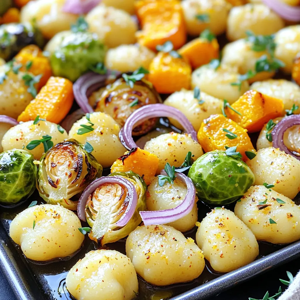 I love using potato gnocchi for this dish. The soft, pillowy texture pairs perfectly with roasted veggies. For the veggies, I pick a medium butternut squash. Its sweet flavor shines when roasted. I also add Brussels sprouts, which get nice and crispy.