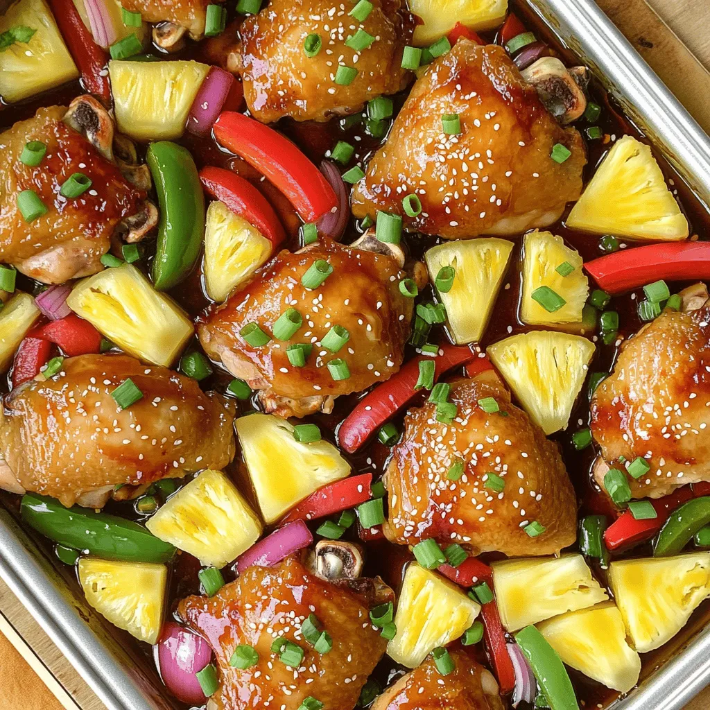 These main ingredients give the dish its great taste. The chicken thighs stay juicy, while pineapple provides a sweet touch. Bell peppers add crunch and color, making the dish bright and fun.