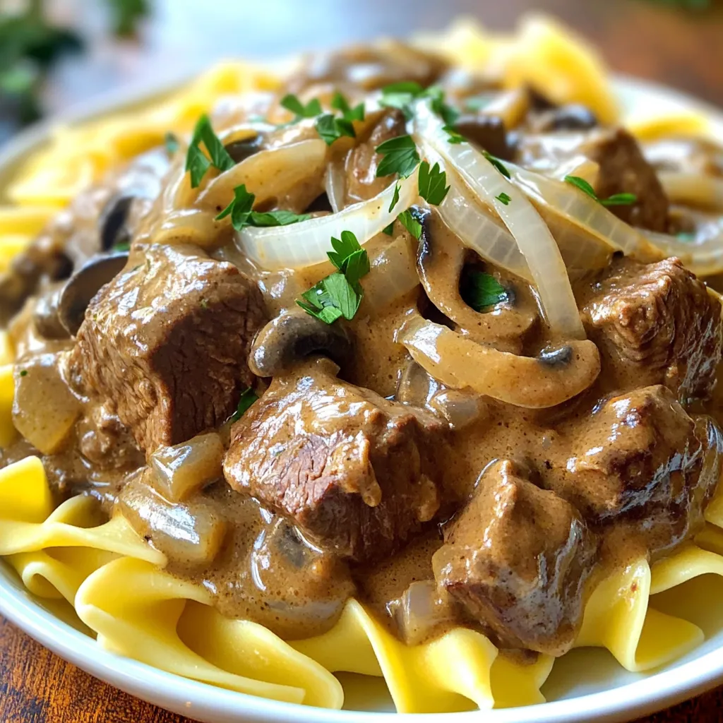 You can easily adapt this beef stroganoff. If you want a lighter dish, use chicken or turkey instead of beef. You can also make it vegetarian by swapping the beef for mushrooms or lentils. For a creamy touch without dairy, use coconut cream or cashew cream in place of sour cream. Gluten-free eaters can use gluten-free noodles and flour.