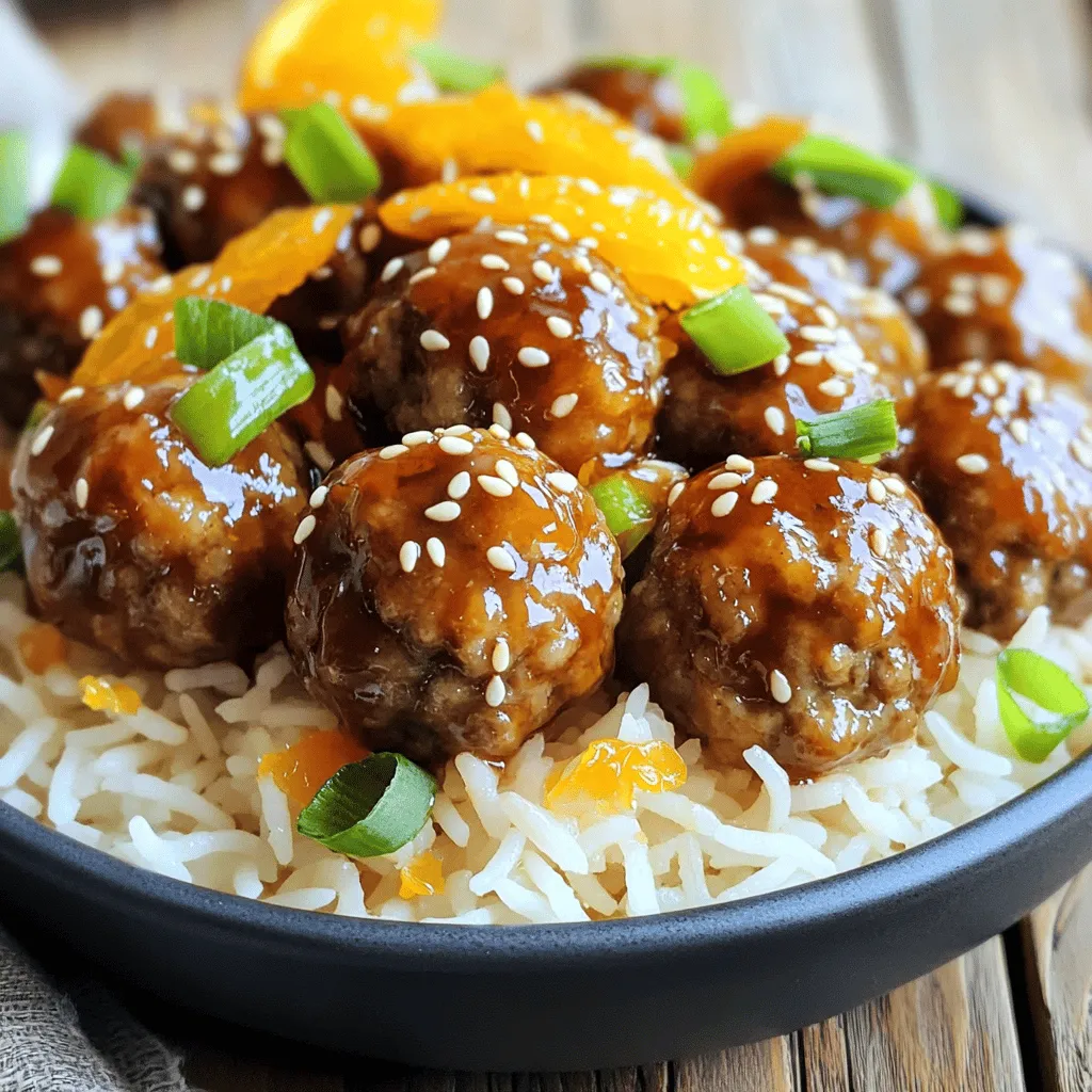 For garnishing, I use green onions for a fresh crunch and sesame seeds for a nutty taste. Jasmine rice is my go-to because it pairs perfectly with the meatballs. Cooking it in chicken broth adds extra flavor, making every bite delightful.
