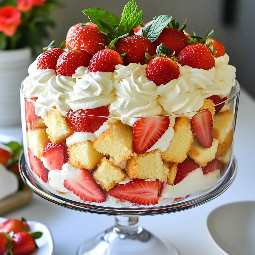 For a stunning trifle, layer your ingredients with care. Start with a layer of pound cake at the bottom. Next, add a layer of strawberry jam. Then, pile on the macerated strawberries. Top it with fluffy whipped cream. Repeat these layers until you reach the top. If you use individual glasses, it lets everyone see the colorful layers. Finish with whole strawberries and mint leaves. This makes a beautiful focal point.